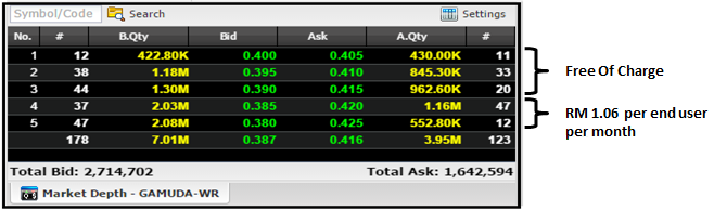 You can continue to view Three (3) Bursa’s Market Depth on i*Trade@CIMB at no charge.