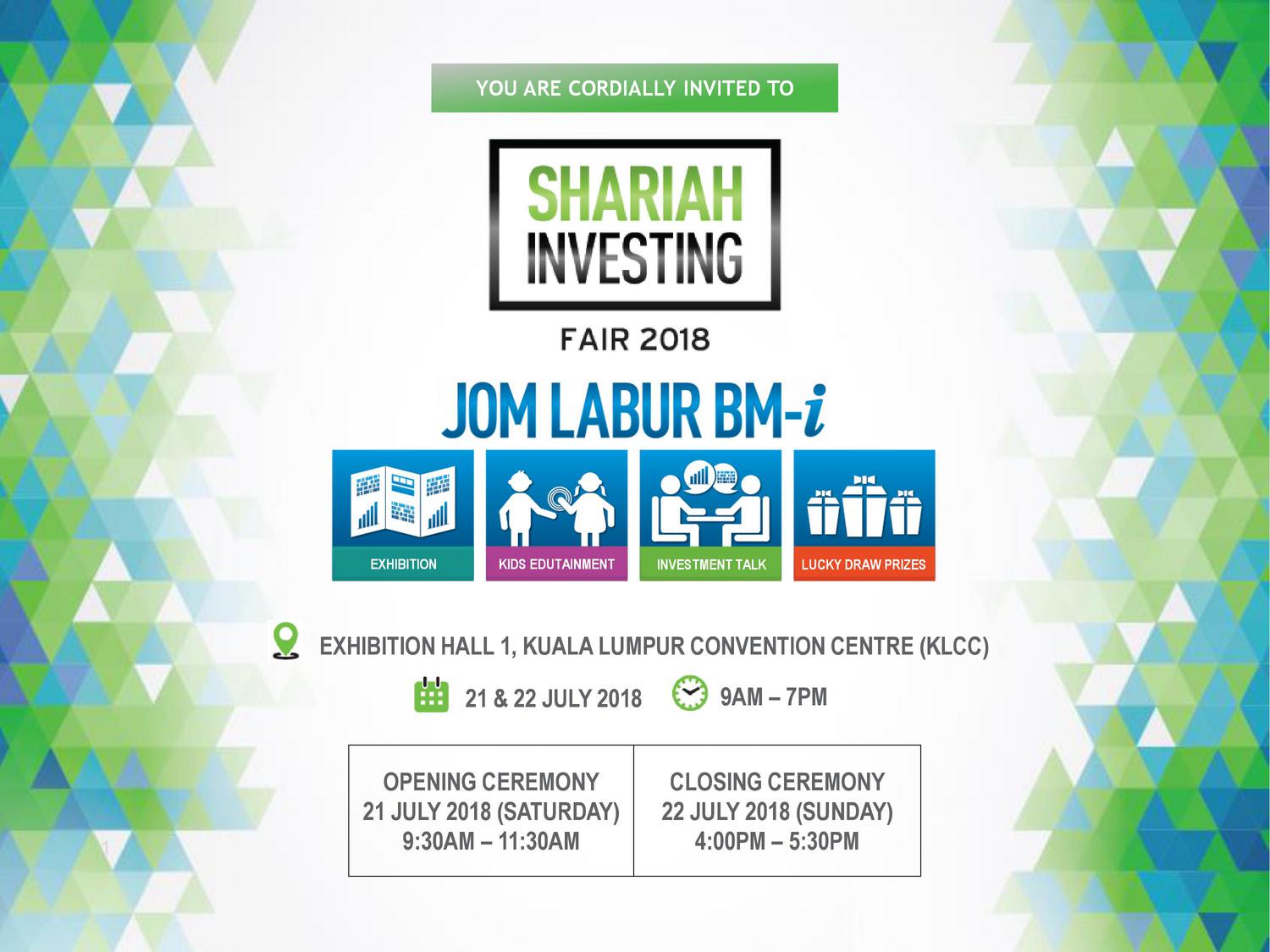 We are pleased to announce that we will be joining the Shariah Investing Fair 2018 organised by Bursa Malaysia-i at Hall 1, Kuala Lumpur Convention Centre on 21 - 22 July 2018 from 9AM - 7PM. Come and check out our booth no. 14 and sign up an account with us to get a complimentary gift!