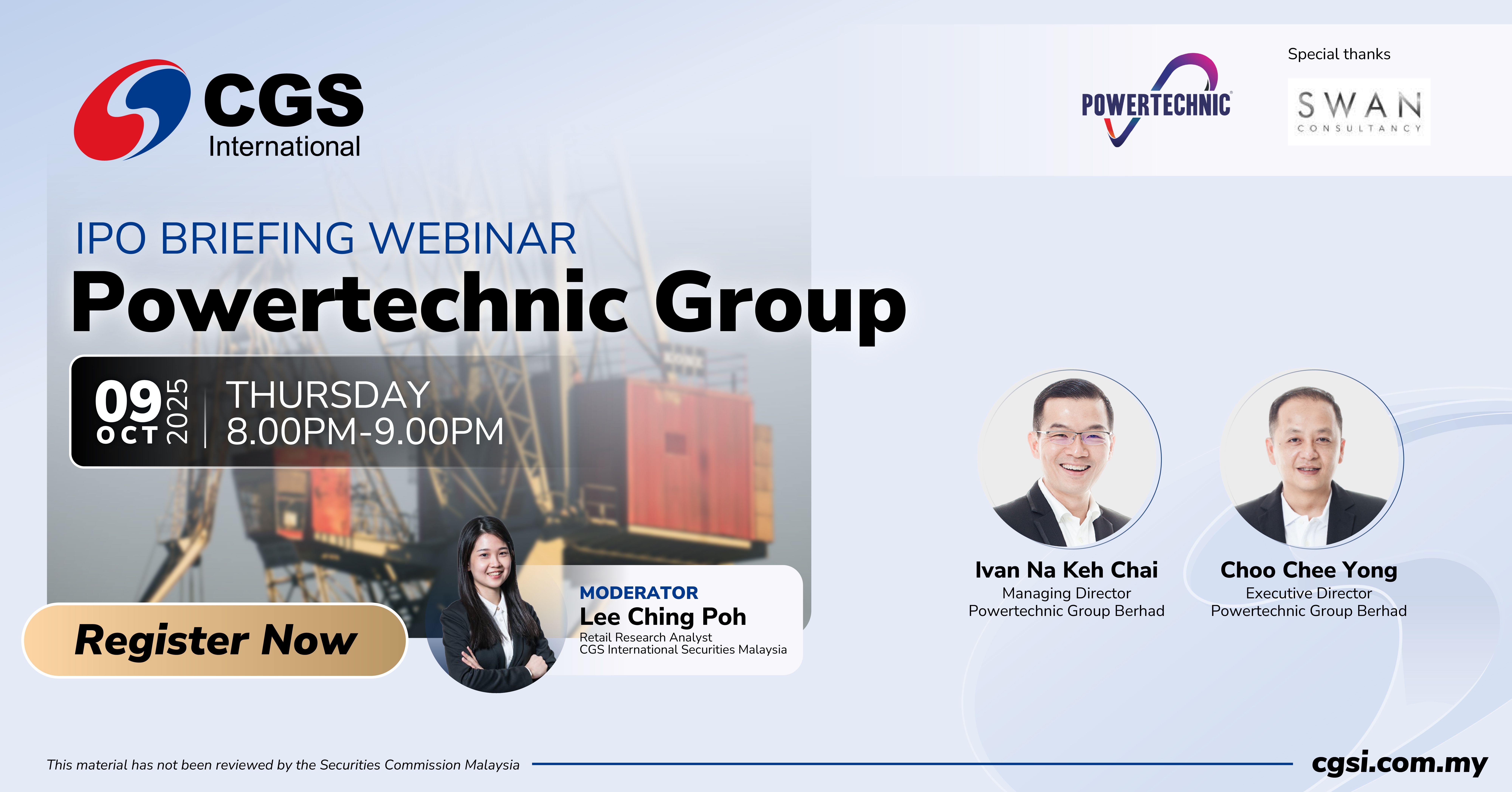 Powertechnic Group Berhad (“Powertechnic” or the “Company”) is a specialist in lifting systems with over 23 years of industry experience, offering comprehensive solutions encompassing engineering design, fabrication, assembly, installation, commissioning, as well as maintenance and repair of crane and hoist systems, elevated platform systems, and elevators. Headquartered in Johor, Malaysia, Powertechnic serves industrial, commercial, and residential markets across Malaysia and Singapore, delivering lifting systems under its own “Powertechnic” brand. Supported by strong in-house engineering capabilities and an experienced management team, the Company is dedicated to enhancing operational efficiency, expanding market reach, and driving sustainable growth through, among others, strategic investments in automation and new product showrooms and sales offices. Join our upcoming webinar to learn more about the Group’s Journey.