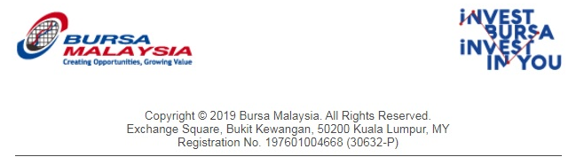 DISCLAIMER: The information provided herein is for information purposes. As any investments will involve risks, you should independently evaluate your investments and strategies and seek independent advice and/or to consult relevant laws, regulations and rules prior to relying on or taking any action based on the information herein. The information herein contained does not constitute legal, financial, trading or investment advice. Bursa Malaysia Berhad and/or the Bursa Malaysia group of companies do not accept any liability howsoever arising, including any liability arising from any decisions made on the basis of this information.