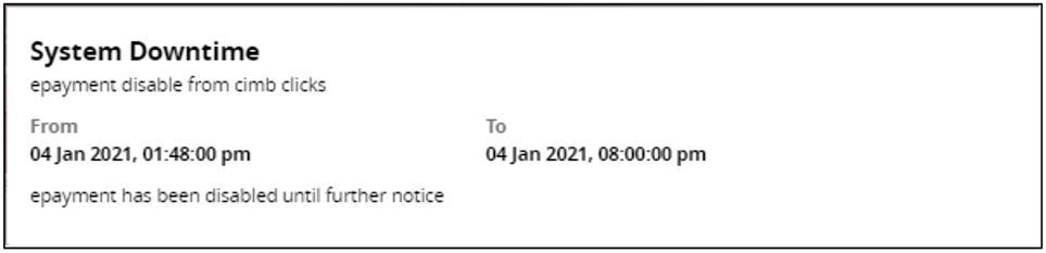 CIMB Clicks ePayment Services Under Maintenance from 4 January 2021