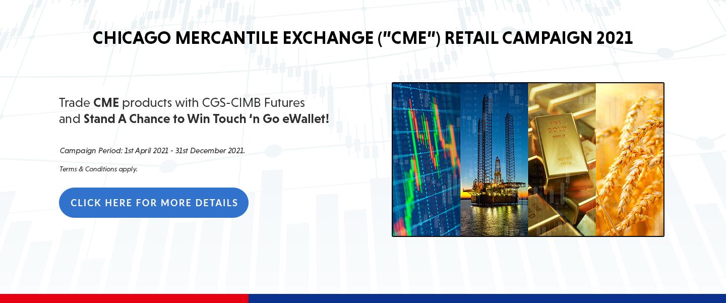 Trade Chicago Mercantile Exchange (CME) products with CGS-CIMB Futures and stand a chance to win Touch 'n Go eWallet credit. |